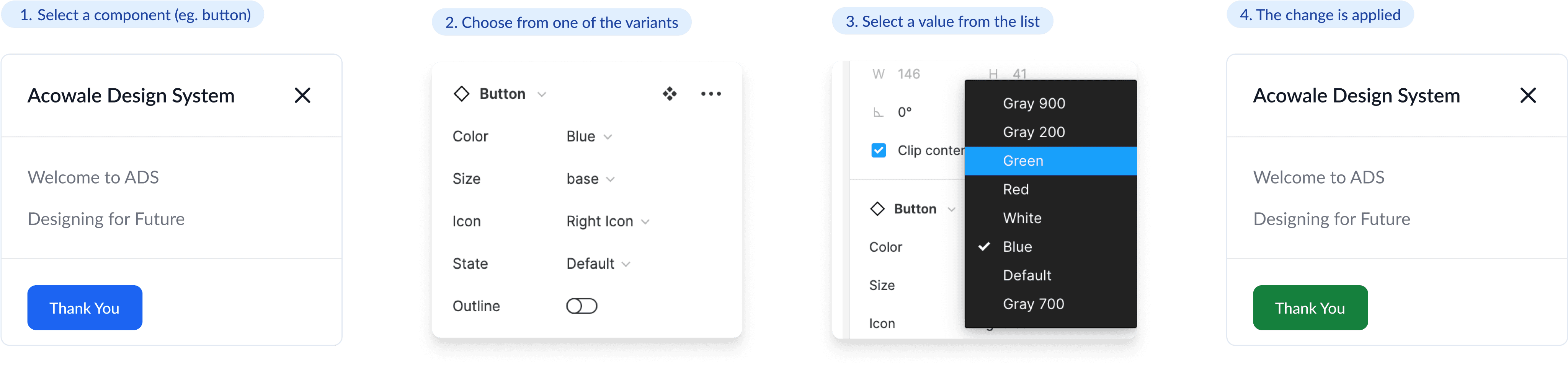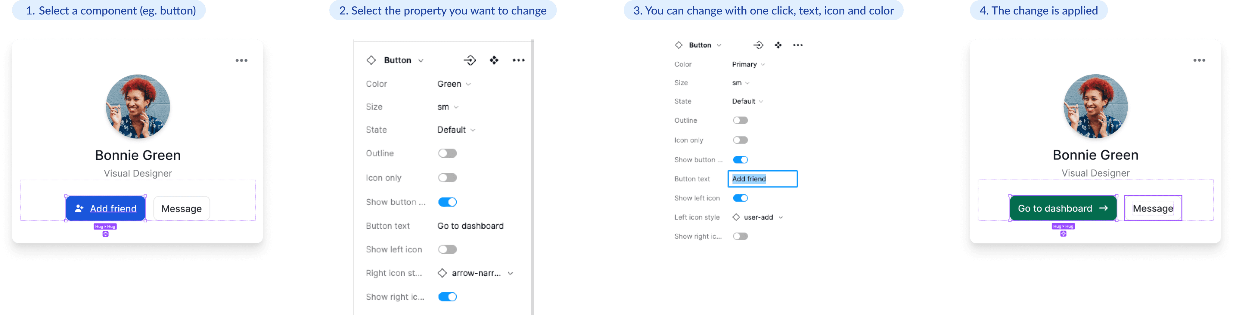 However, Atomic Design Principles really helped me to ensure scalable elements by using nested components, and using component properties to simplify variables. We started by creating different properties to be a changeable aspect of the component. This allowed us to control things like -